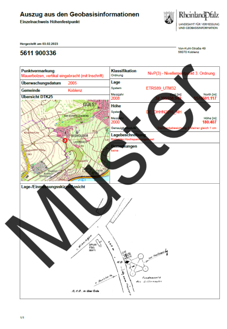Auszug aus dem amtlichen Nachweis der Festpunkte für Rheinland-Pfalz